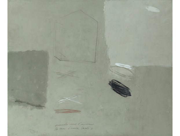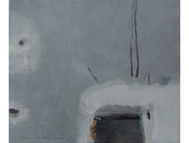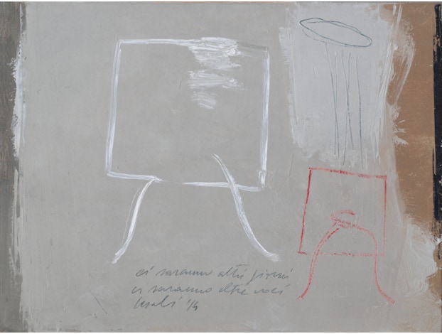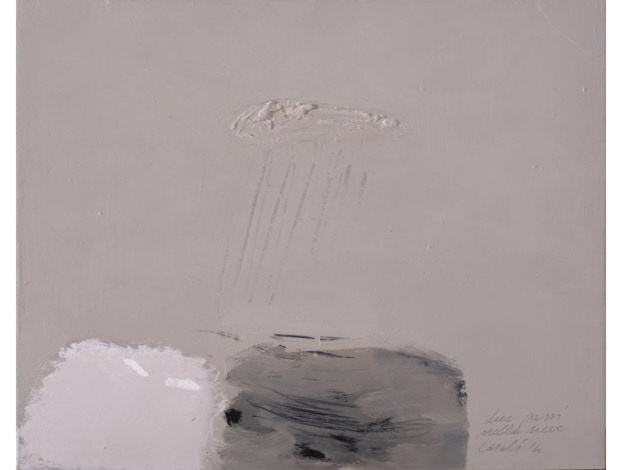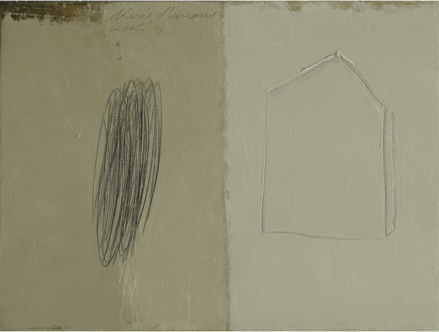 Casali, dal canto suo, si limita ad aggiungere un tavolo volante e il profilo di una casa dal tetto scosceso per non aver bisogno d’altro. Poeta della sintesi e della leggerezza, costruisce racconti minimi dove l’orizzonte finisce sul bordo di un piano. Più in là, non si sa cosa ci sia.
